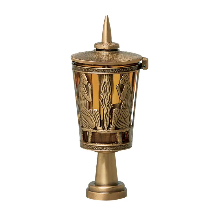 Лампада на могилу P-10WBL высотой 27 см. и диаметром 16 см. изготовлена из искусственного камня (полимергранита) с помощью технологии бесшовной отливки. На внешнюю поверхность лампады нанесено защитное декоративное покрытие с включением кварцевых наполнителей и полимерных смол.